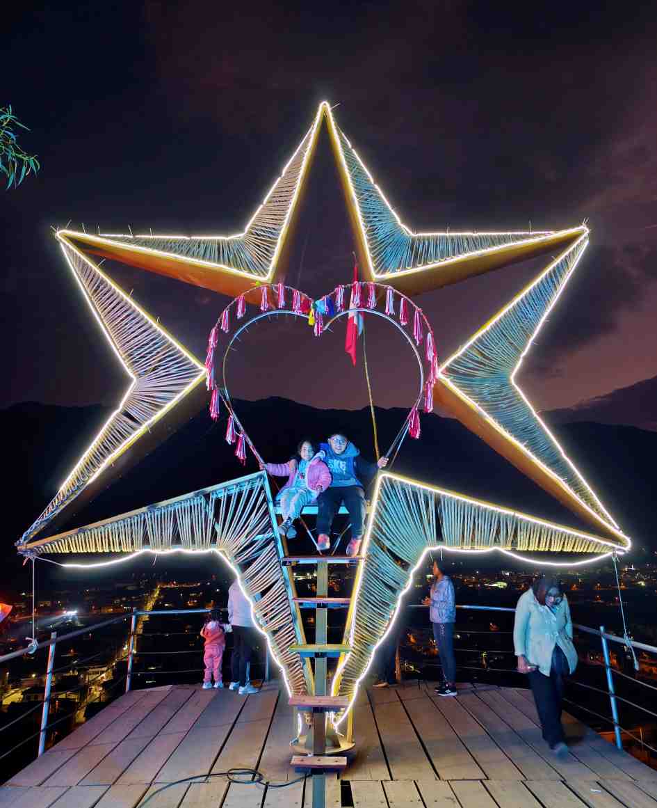 La estrella giratoria gigante una estructura metálica y lumínica de varios metros de diámetro gira suavemente impulsada por el viento y mecanismos artesanales, creando un espectáculo visual que cambia con la luz del día y la hora. Su diseño, inspirado en símbolos cósmicos y antiguas cosmovisiones andinas, fusiona lo ancestral con lo contemporáneo, convirtiéndola en un punto de encuentro entre turistas, artistas y amantes de la naturaleza.